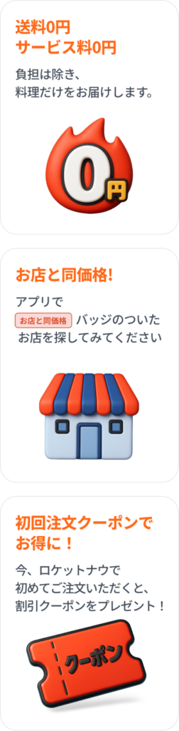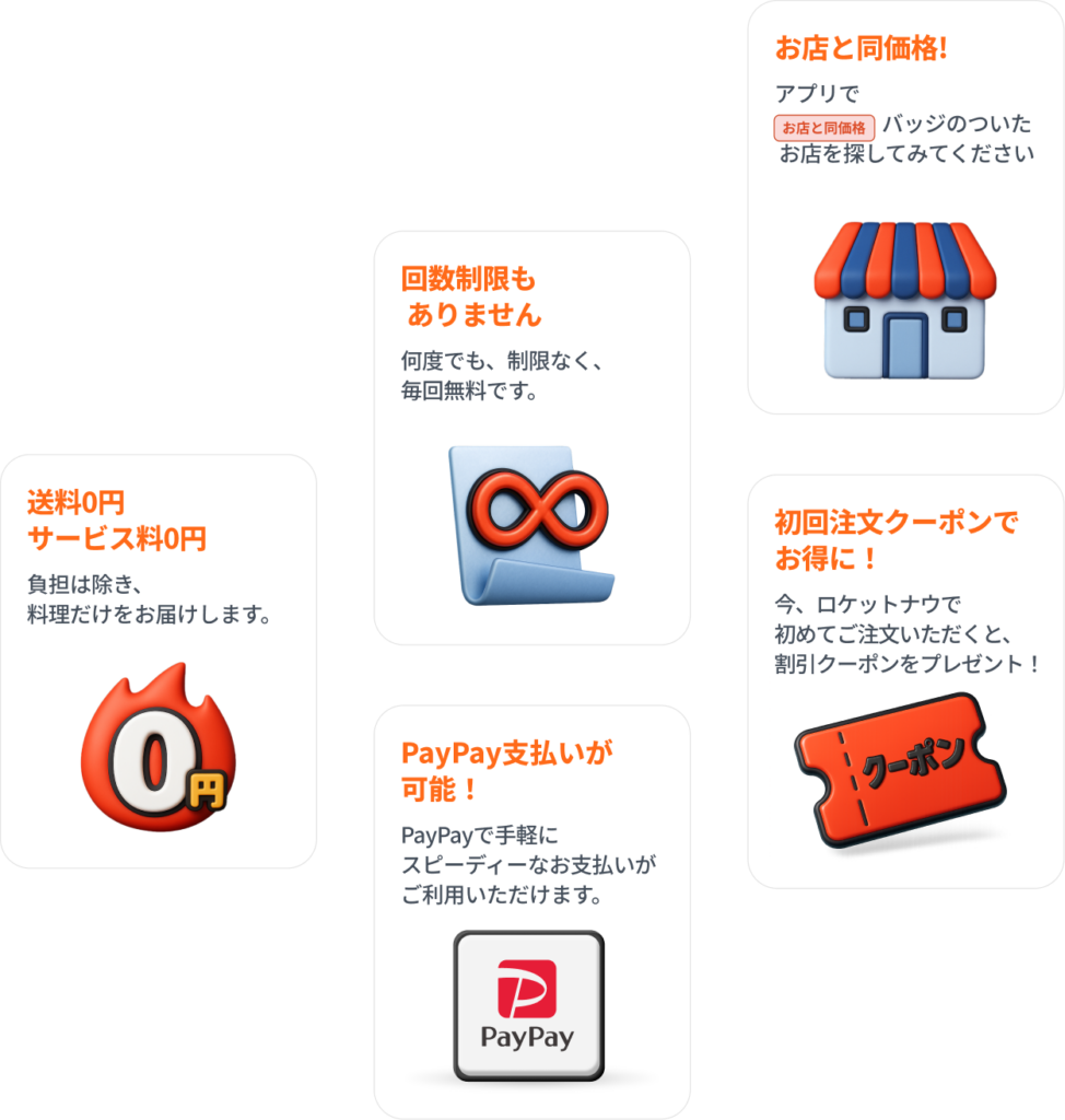 注文する ロケットナウアプリで、いつでも、何度でも制限なく送料とサービス料を無料でお楽しみください! ついにPayPayに対応PayPayでのお支払いが可能になりました! 送料とサービス料のないフードデリバリー ロケットナウだけの特別さ 注文する 送料・サービス料のない フードデリバリーアプリ ロケットナウのご紹介 送料とサービス料のないフードデリバリー ロケットナウだけの特別さ 注文する 送料・サービス料のない フードデリバリーアプリ ロケットナウのご紹介 ついにPayPayに対応PayPayでのお支払いが可能になりました! 送料とサービス料のない フードデリバリー ロケットナウだけの特別さ